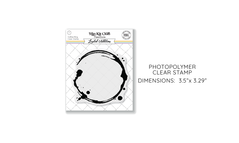 Enhance your scrapbook pages with our April 2023 Coffee Stain Stamp! Create authentic coffee-stained effects on your paper projects with this high-quality photopolymer clear stamp. Perfect for any design with listed dimensions. Get it now from the Hip Kit Club Limited Edition.