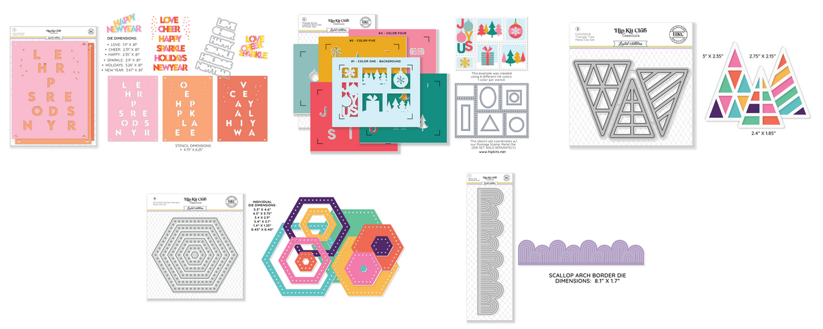 - Color Block Triangle Tree Die Set: Bring a contemporary twist to your holiday crafting with this modern geometric tree design. Perfect for creating striking cards and decorations, this set allows you to play with color blocking techniques for fresh, stylish results.