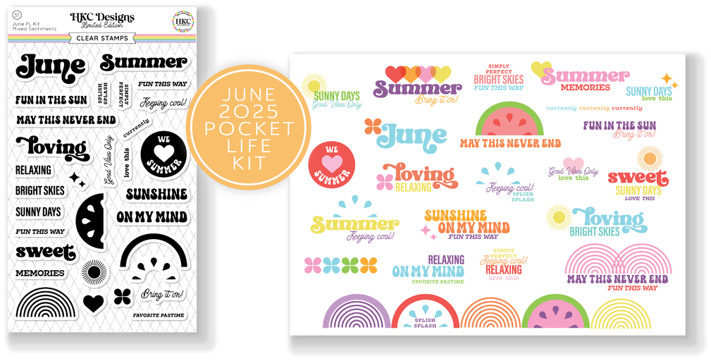 Capture your sunny moments with the June 2025 Pocket Life Stamp Set from Hip Kits. Featuring the "Pocket Full of Sunshine" 4"x6" photopolymer stamp set, this kit is perfect for adding bright, cheerful accents to your scrapbook pages. Easy to use and versatile, it helps you preserve your favorite memories with a warm, friendly touch.