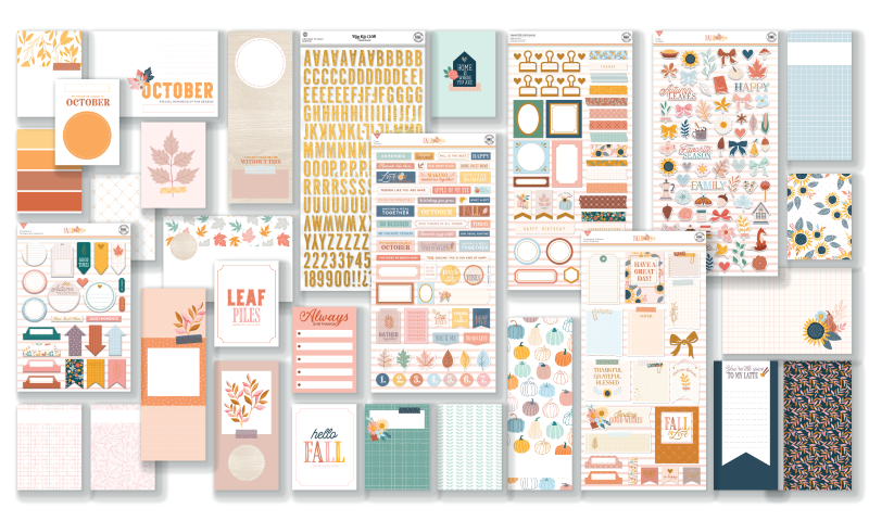 Get creative this fall with our October 2022 Hip Kit Club Pocket Life Scrapbook Kit! Featuring 24 exclusive cards, gold foil alphabet and clear mini phrase stickers, and a downloadable printable file, this kit is perfect for capturing all your autumn memories. Don't miss out on our puffy shape stickers and cardstock stickers with gold foil accents.