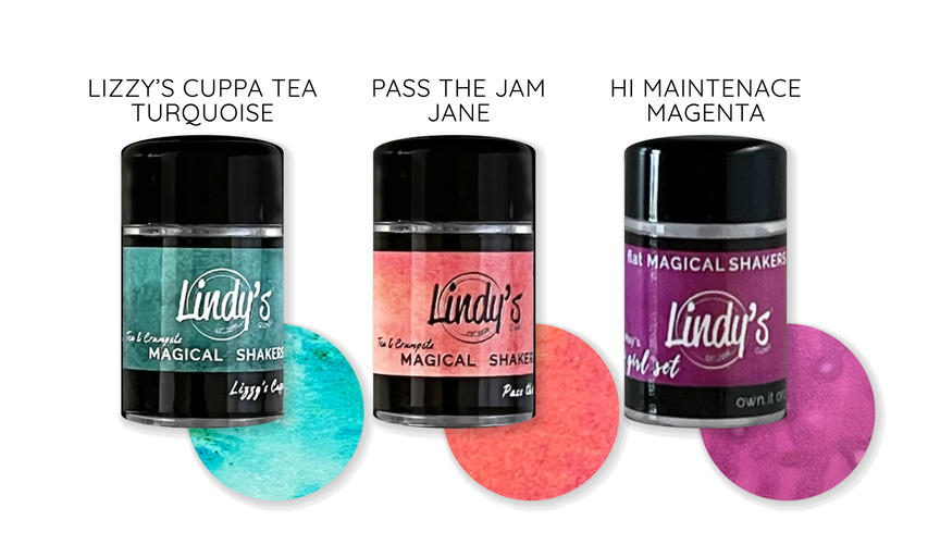 The October 2025 Hip Kit Club Color Scrapbook Kit features three vibrant Magical Shaker powders from Lindy's Gang: Hi Maintenance Magenta, Lizzy's Cuppa Tea Turquoise, and Pass the Jam Jane. These shimmering watercolor powders add rich, sparkling color to your projects, perfect for enhancing your scrapbook pages with eye-catching texture and depth. Bring your creativity to life with these versatile, high-quality color pigments designed to inspire and elevate your crafting experience.