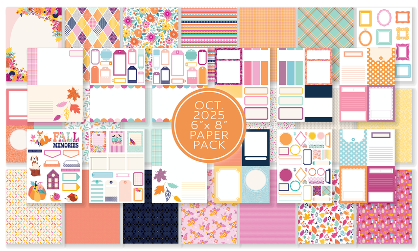 Discover the October 2025 Hip Kit Club Pocket Life Collection featuring the exclusive Sweater Weather 6"x8" paper pack with 18 double-sided cardstock sheets. This set includes 5 double-sided journaling card sheets, 3 pages of cut-apart tags, labels, and icons, plus 10 double-sided patterned papers with smaller scale designs for versatile creative options. Perfect for adding cozy autumn vibes to your scrapbook or planner projects with quality materials designed to inspire and organize your memories.
